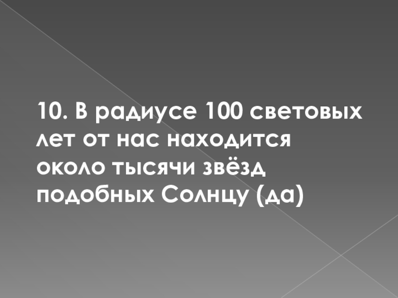 Слайд 11410. В радиусе 100 световых лет от нас находится около тысячи звёзд