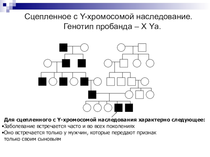 Слайд 43Сцепленное с Y-хромосомой наследование. Генотип пробанда – Х Yа.
