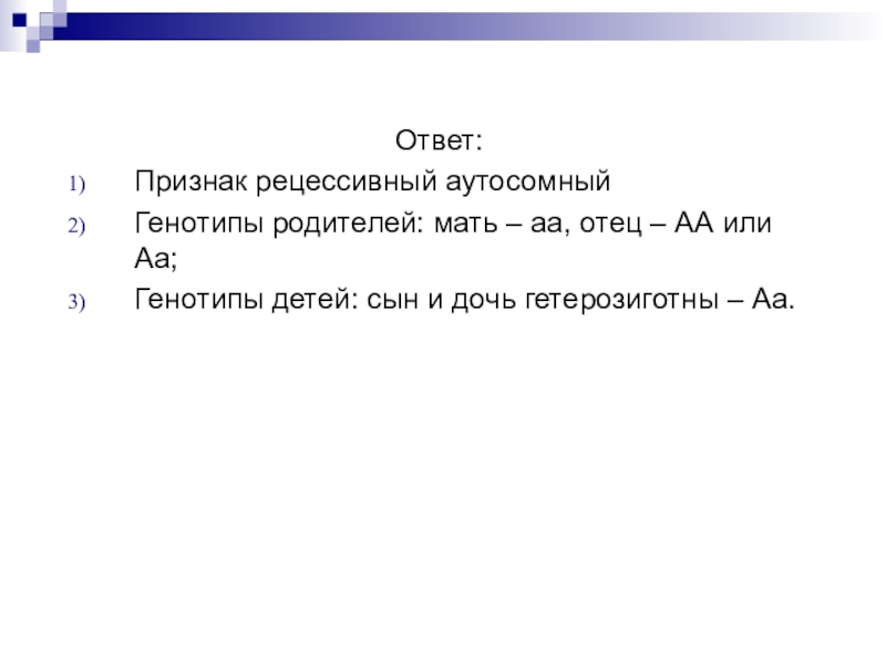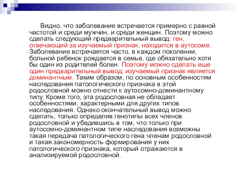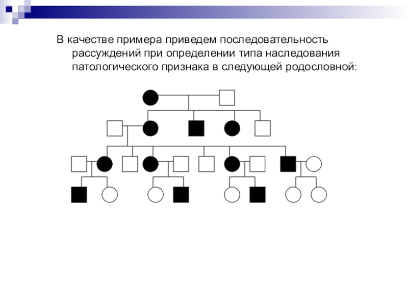 Слайд 47В качестве примера приведем последовательность рассуждений при определении типа наследования патологического