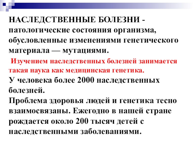 Слайд 57НАСЛЕДСТВЕННЫЕ БОЛЕЗНИ -патологические состояния организма, обусловленные изменениями генетического материала — мутациями.