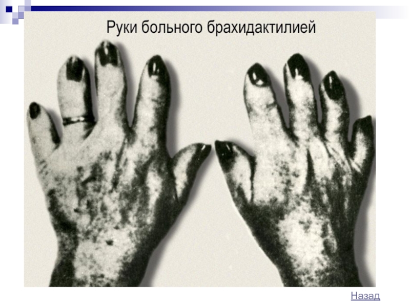 Слайд 44У-сцепленные признаки: гипертрихоз (оволосение края ушной раковины), синдактилия (сращение пальцев рук).