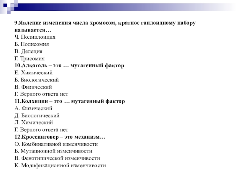 Слайд 59.Явление изменения числа хромосом, кратное гаплоидному набору называется…
