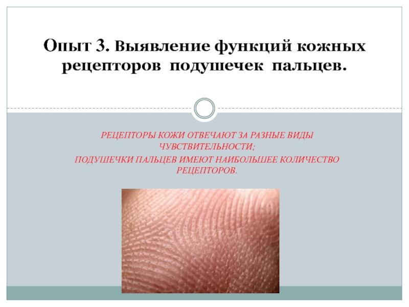Опыт 3. Выявление функций кожных рецепторов подушечек пальцев.