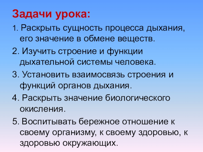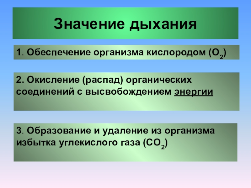ДЫХАНИЕ– ПРОЦЕСС ОБЕСПЕЧЕНИЯ КЛЕТОК КИСЛОРОДОМ , НЕОБХОДИМЫЙ ДЛЯ БИОЛОГИЧЕСКОГО ОКИСЛЕНИЯ , И ВЫВЕДЕНИЯ УГЛЕКИСЛОГО ГАЗА.