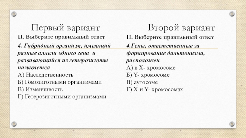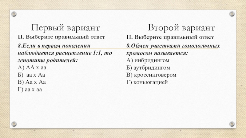 1.Выберите из приведенных ниже схем ту, которая выражает смысл второго закона Менделя.