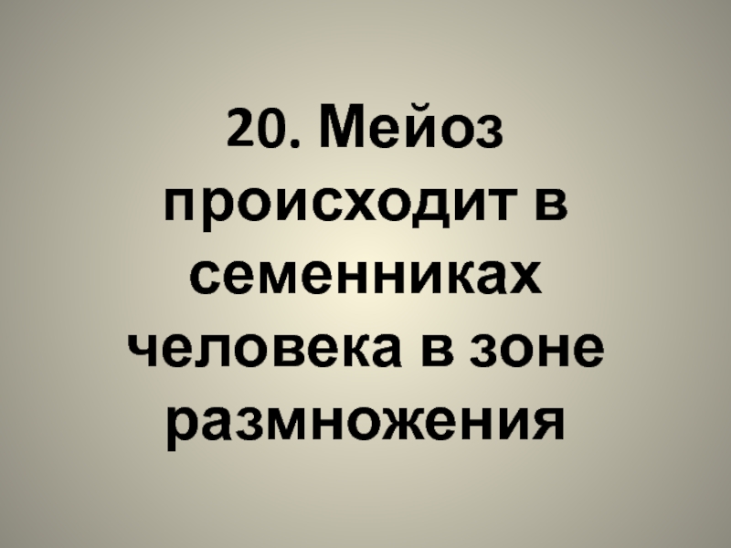 Слайд 2220. Мейоз происходит в семенниках человека в зоне размножения