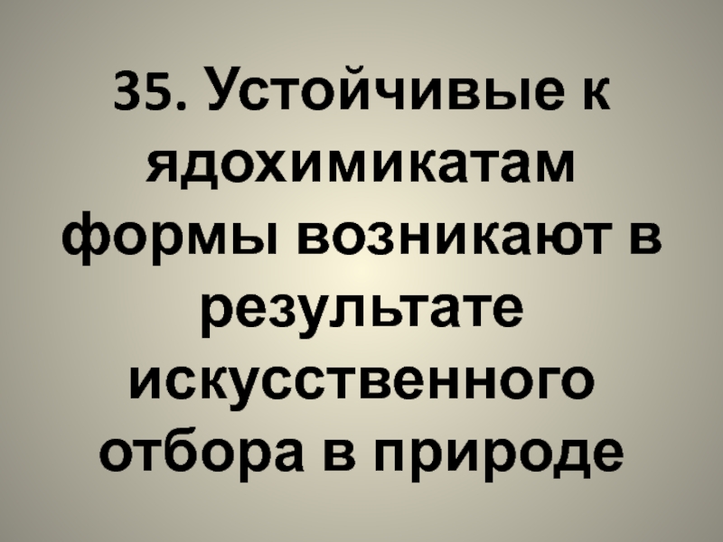 Слайд 3735. Устойчивые к ядохимикатам формы возникают в результате искусственного отбора в