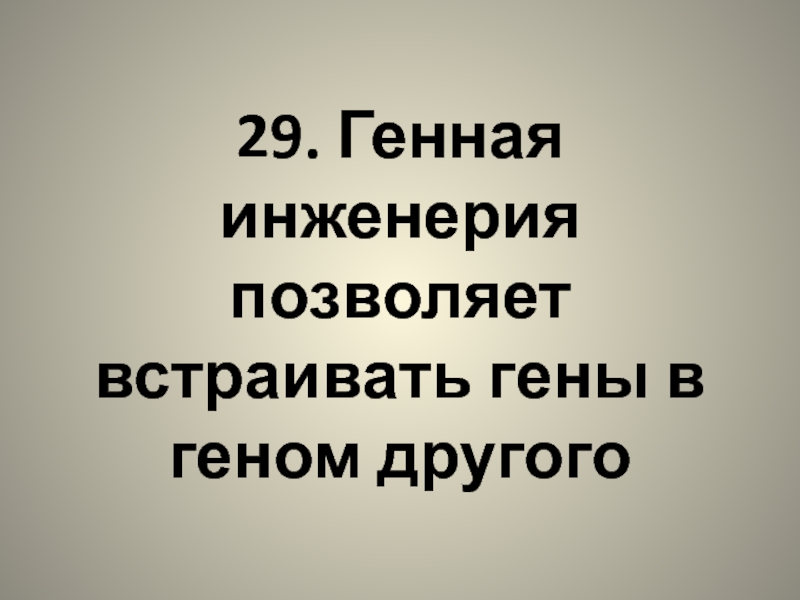 Слайд 3129. Генная инженерия позволяет встраивать гены в геном другого