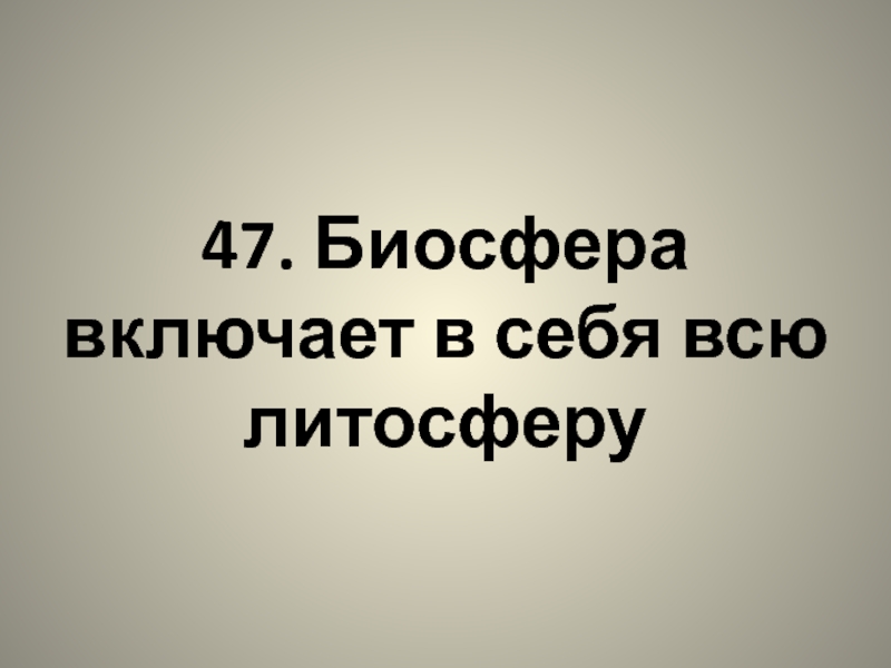 Слайд 4947. Биосфера включает в себя всю литосферу