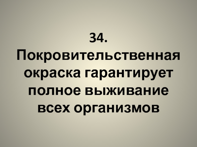 Слайд 3634. Покровительственная окраска гарантирует полное выживание всех организмов