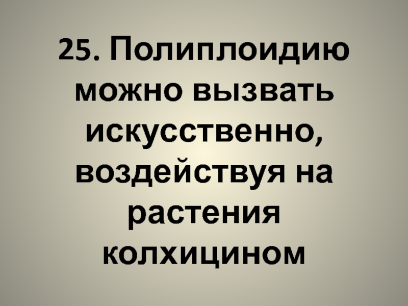 Слайд 2725. Полиплоидию можно вызвать искусственно, воздействуя на растения колхицином