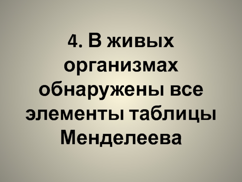 4. В живых организмах обнаружены все элементы таблицы Менделеева
