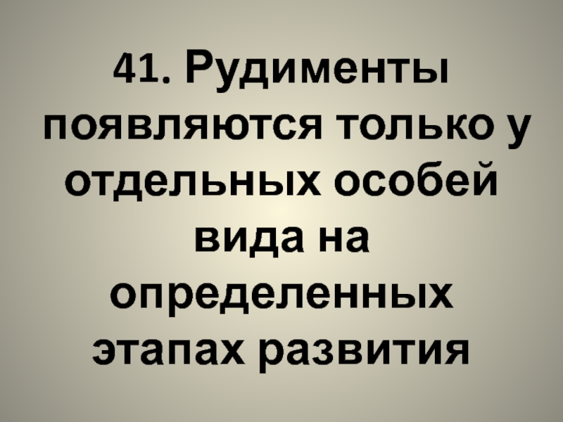 41. Рудименты появляются только у отдельных особей вида на определенных этапах развития