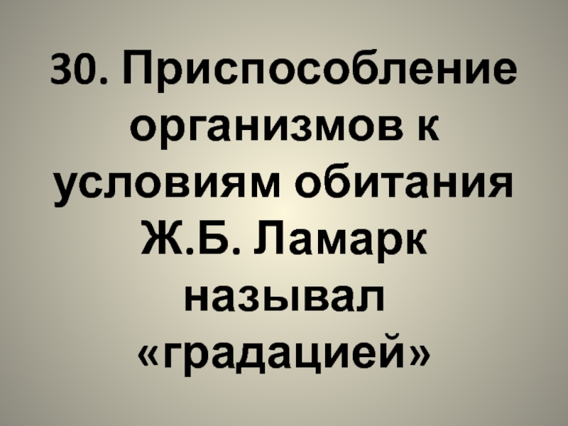 Слайд 3230. Приспособление организмов к условиям обитания Ж.Б. Ламарк называл «градацией»