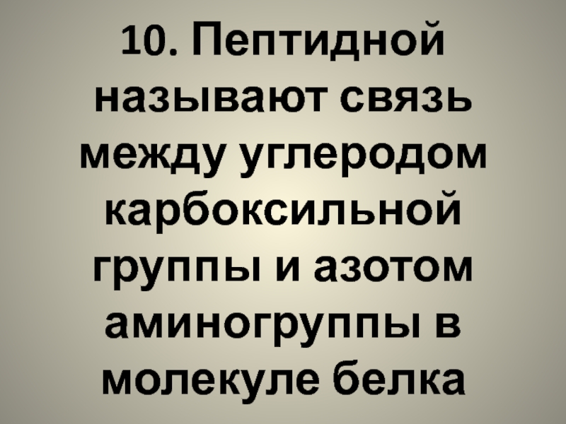 Слайд 1210. Пептидной называют связь между углеродом карбоксильной группы и азотом аминогруппы
