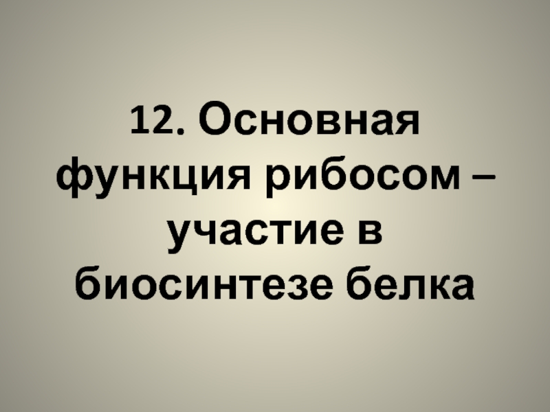 Слайд 1412. Основная функция рибосом – участие в биосинтезе белка