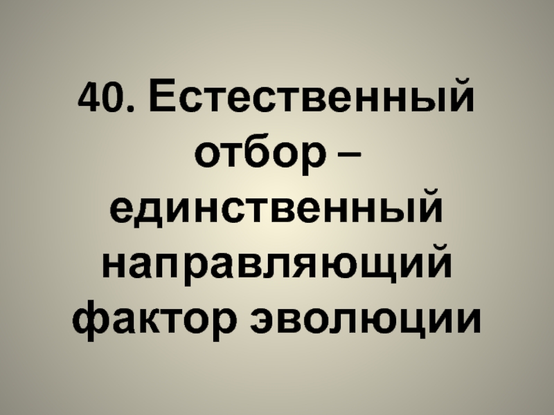 Слайд 4240. Естественный отбор – единственный направляющий фактор эволюции