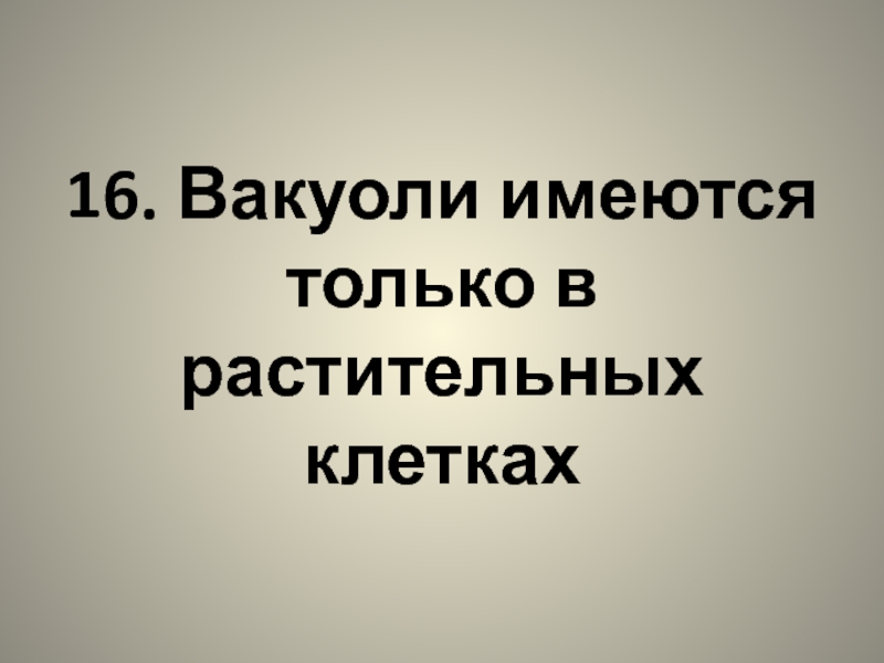 Слайд 1816. Вакуоли имеются только в растительных клетках