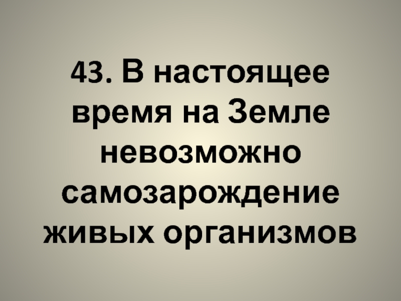 Слайд 4543. В настоящее время на Земле невозможно самозарождение живых организмов