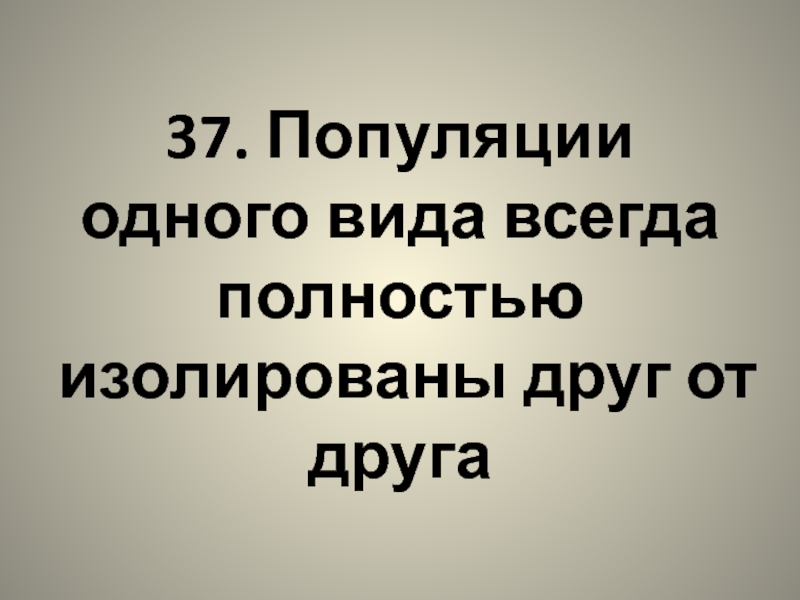Слайд 3937. Популяции одного вида всегда полностью изолированы друг от друга