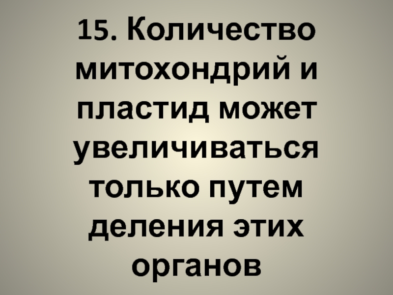 Слайд 1715. Количество митохондрий и пластид может увеличиваться только путем деления этих
