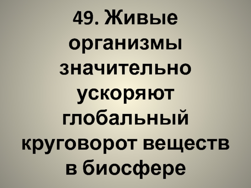 Слайд 5149. Живые организмы значительно ускоряют глобальный круговорот веществ в биосфере