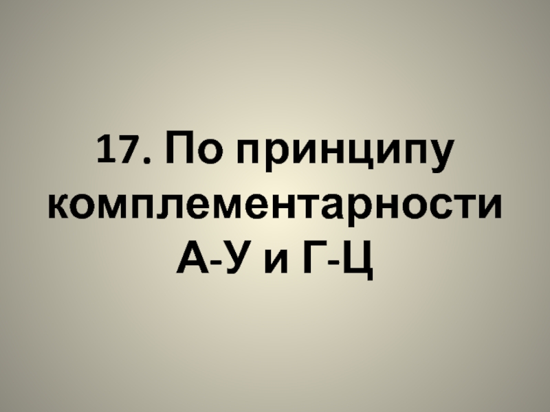 Слайд 1917. По принципу комплементарности А-У и Г-Ц