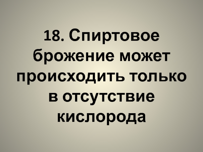18. Спиртовое брожение может происходить только в отсутствие кислорода