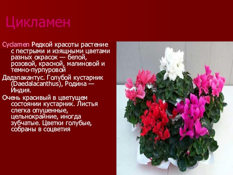 Cyclamen Редкой красоты растение с пестрыми и изящными цветами разных окрасок