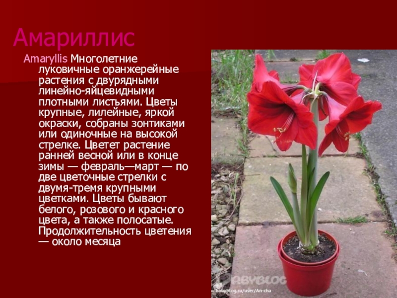 Amaryllis Многолетние луковичные оранжерейные растения с двурядными линейно-яйцевидными плотными листьями. Цветы
