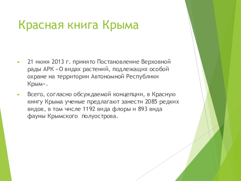 «О видах растений, подлежащих особой охране на территории Автономной Республики Крым».