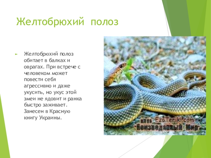 с человеком может повести себя агрессивно и даже укусить, но укус этой змеи не ядовит и ранка быстро заживает. Занесен в Красную книгу Украины.