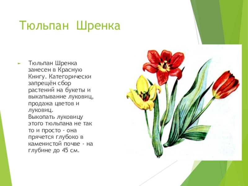 Тюльпан Шренка занесен в Красную Книгу. Категорически запрещён сбор