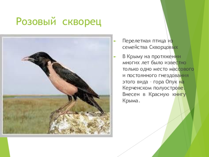 лет было известно только одно место массового и постоянного гнездования этого вида – гора Опук на Керченском полуострове. Внесен в Красную книгу Крыма.