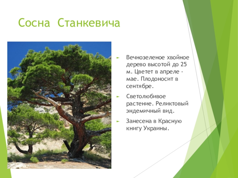 яйцевидной кроной. Хвоя сизовато-зеленая, мягкая на ощупь, сходная с хвоей кипариса. Растет в Крыму во многих местах, но везде он немногочислен и поэтому занесен в Красную книгу.