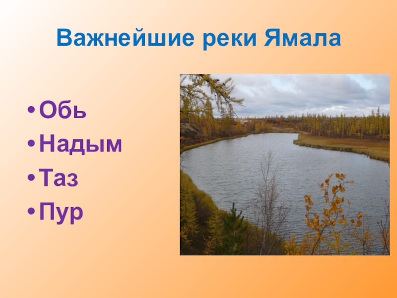 Важнейшие реки Ямала 	ОбьНадымТазПур
