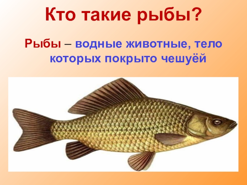 Кто такие рыбы? Рыбы – водные животные, тело которых покрыто чешуёй