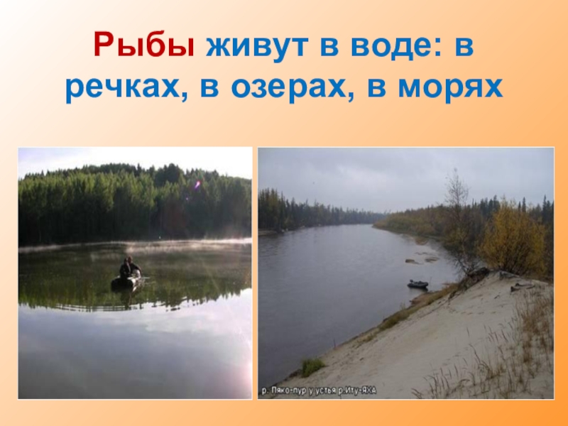 Слайд 4Рыбы живут в воде: в речках, в озерах, в морях