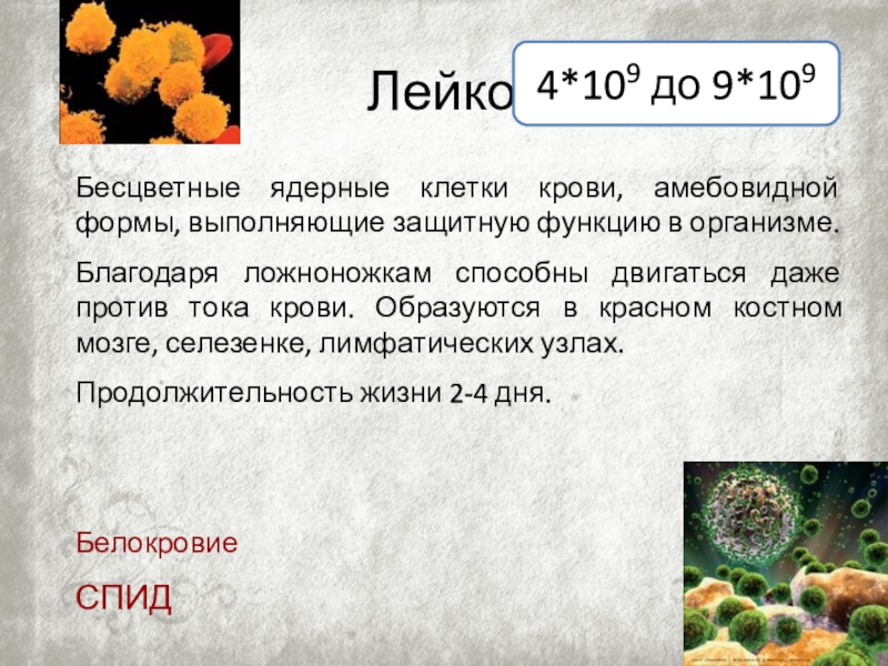 Бесцветные ядерные клетки крови, амебовидной формы, выполняющие защитную функцию в организме.