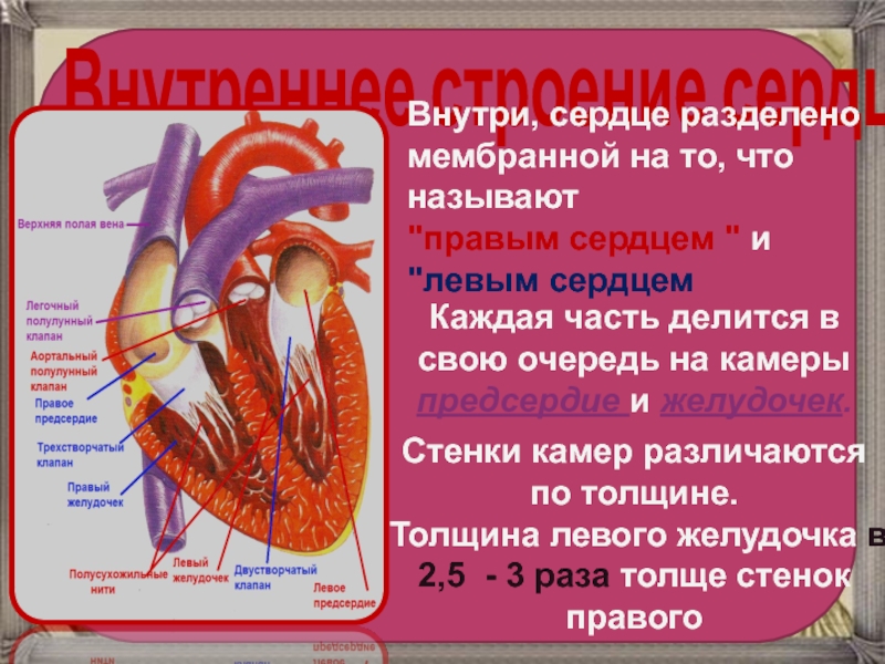 Каждая часть делится в свою очередь на камеры предсердие и желудочек.