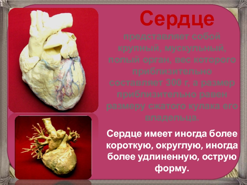 Цель урока: развивать знания о системе органов кровообращения, её значении, о строении сердца.