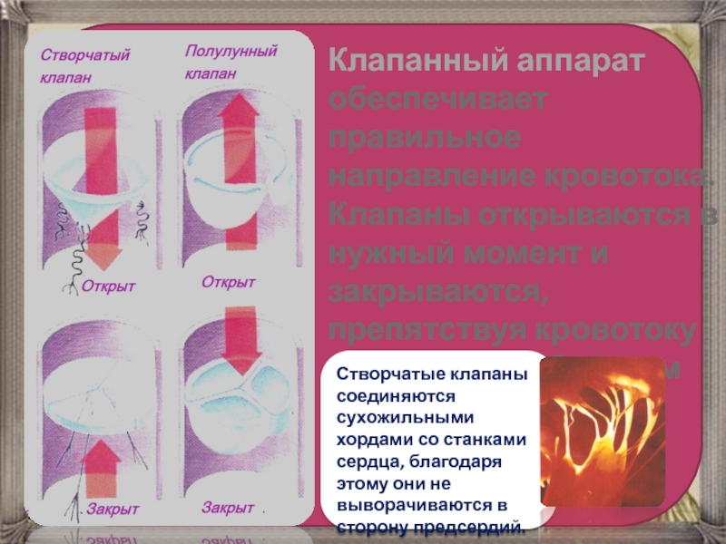 Створчатые клапаны соединяются сухожильными хордами со станками сердца, благодаря этому они не выворачиваются в сторону предсердий.