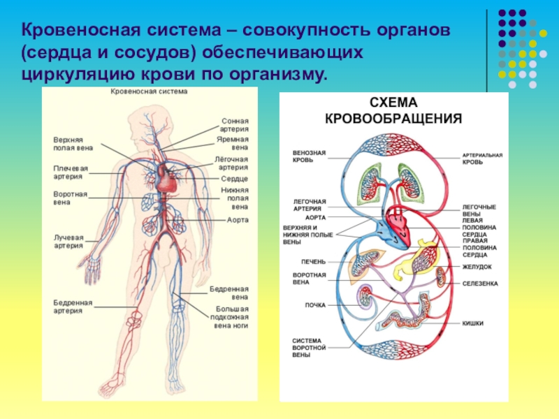 По артериям кровь выходит из сердца под большим давлением, по венам возвращается к сердцу. Капилляры оплетают органы, обеспечивая обмен веществ и соединяют артерии и вены.