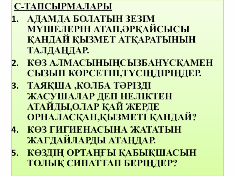 Көз гигиенасына жататын жағдайларды атаңдар.