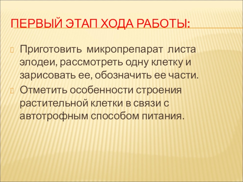 Слайд 11ПЕРВЫЙ ЭТАП ХОДА РАБОТЫ: