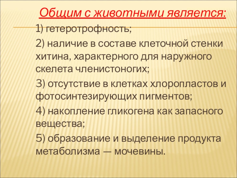 3) отсутствие в клетках хлоропластов и фотосинтезирующих пигментов;