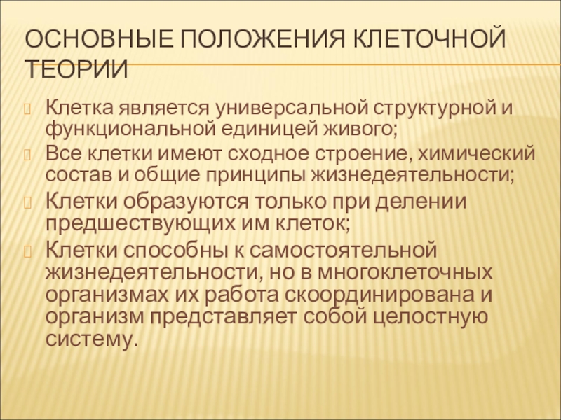 Слайд 2ОСНОВНЫЕ ПОЛОЖЕНИЯ КЛЕТОЧНОЙ ТЕОРИИ
