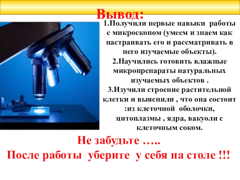 Цель работы: формирование навыков работы с микроскопом при изучении натурального объекта