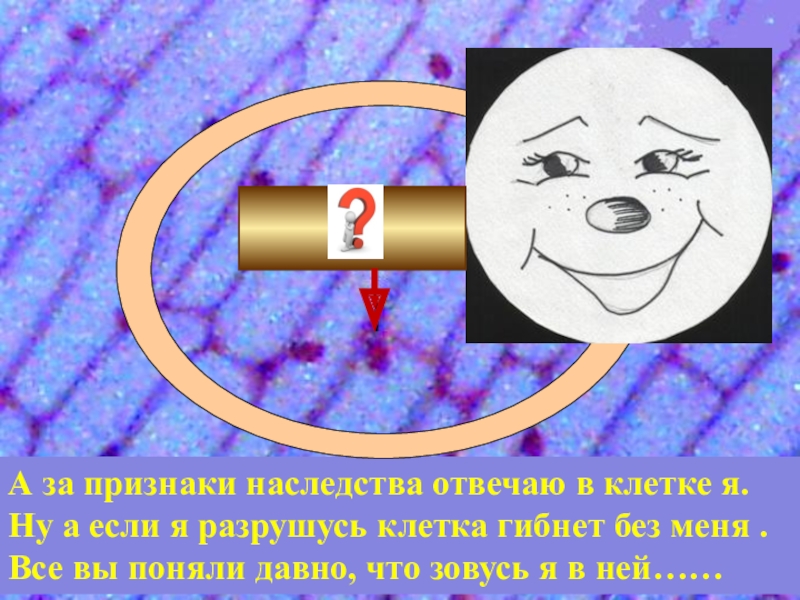 А за признаки наследства отвечаю в клетке я. Ну а если я разрушусь клетка гибнет без меня . Все вы поняли давно, что зовусь я в ней……