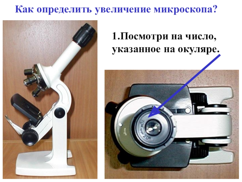 Перемножь эти числа. Произведение будет указывать увеличение, которое в данный момент дает микроскоп.